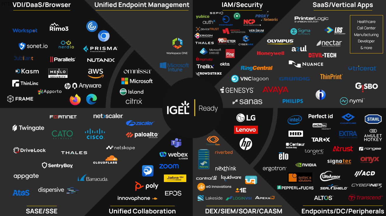 IGEL’s Preventative Security Model is an orchestration methodology with enforcement points for multi-vendor Zero Trust architectures. It is a modern approach to endpoint security that prevents threats by design. It supports modern IT & OT application delivery across five supported methods:
